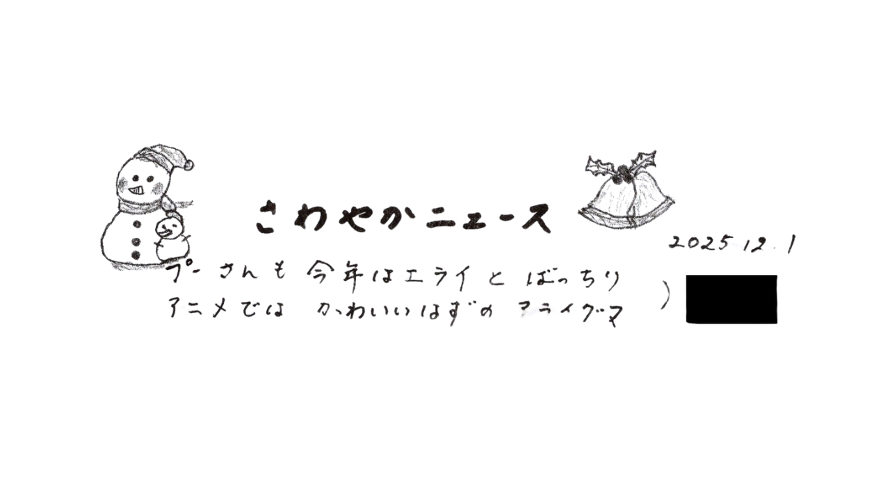 今年もあと残り少なくなってきましたが、戦争は終らず日中関係もギクシャクしたままで来年に持ち越しそうです。来年こそ良いニュースが聞けるよう願っています。
